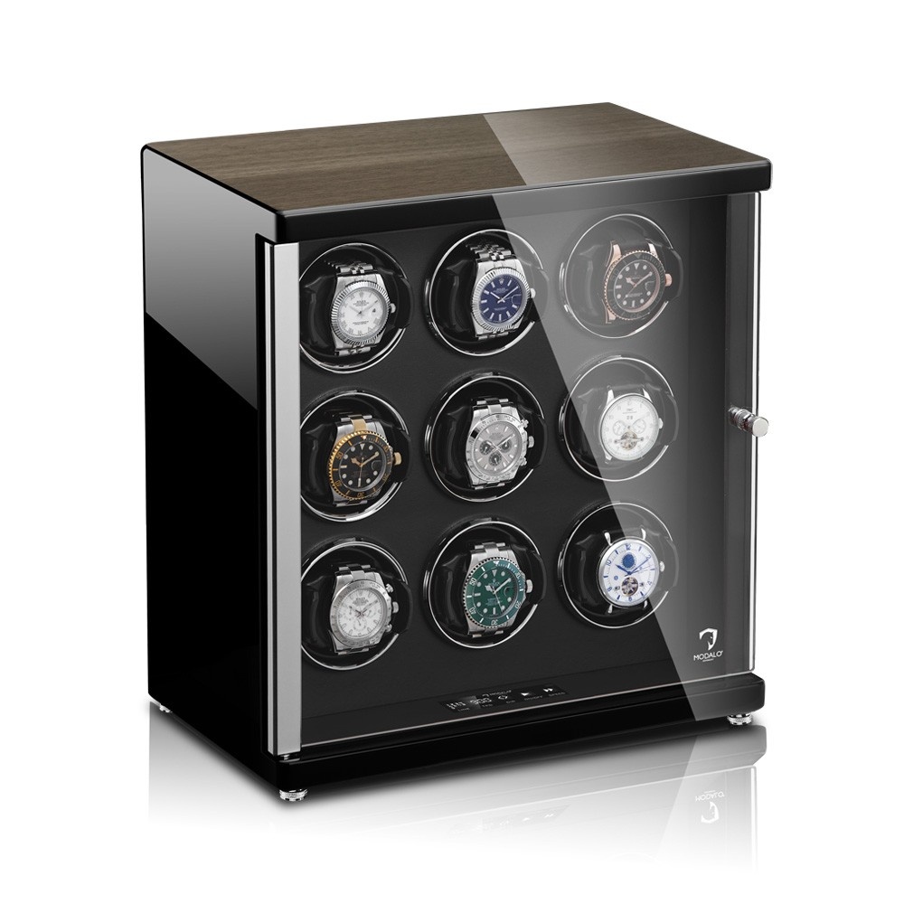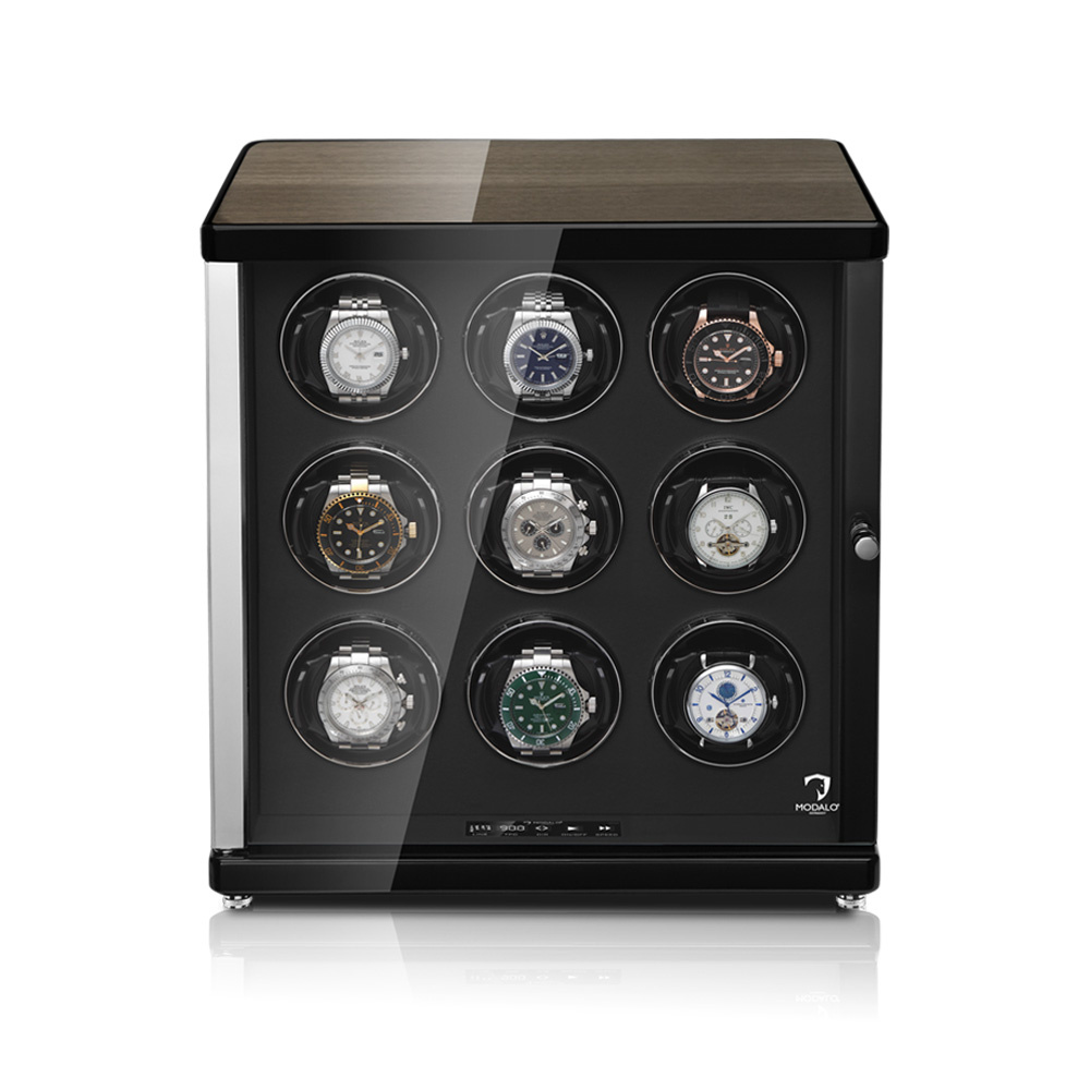 AMBIENTE Uhrenbeweger 9 Uhren Eiche Schwarz