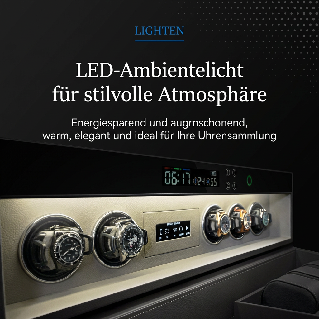 • Ihre Sammlung ist mehr als eine Auswahl an Zeitmessern – sie ist Ausdruck Ihrer Leidenschaft und Ihres Erfolgs. Unser intelligentes Safesystem bietet Ihren Automatikuhren den Schutz, den sie verdienen, und die Pflege, die sie brauchen.