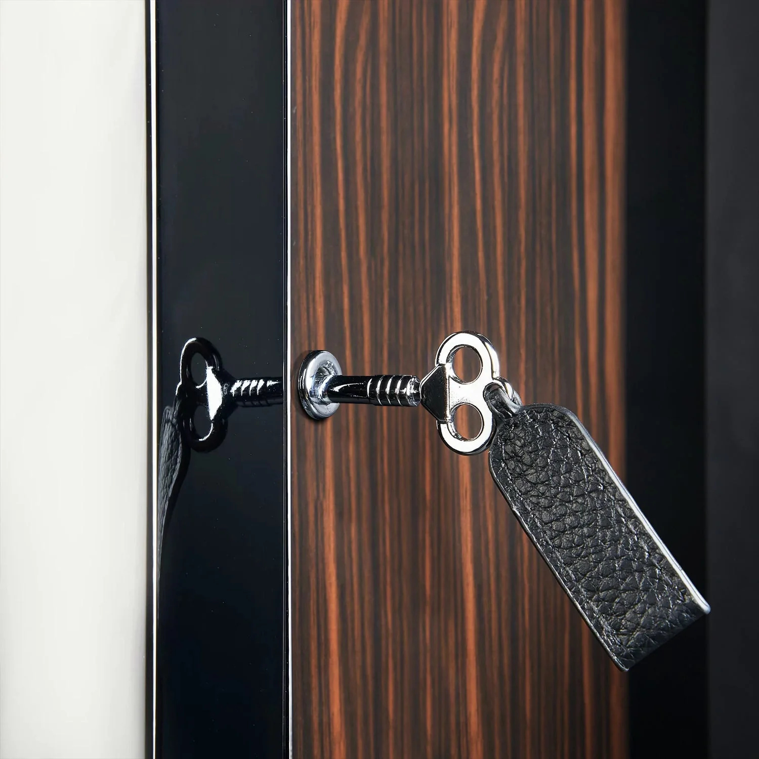 - Schönes Zebrano-Ebenholz mit Tür aus gehärtetem Glas