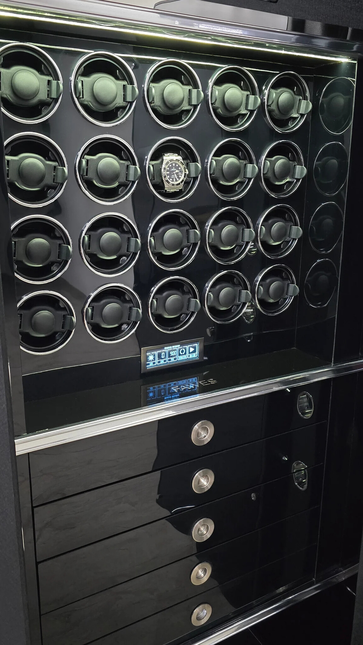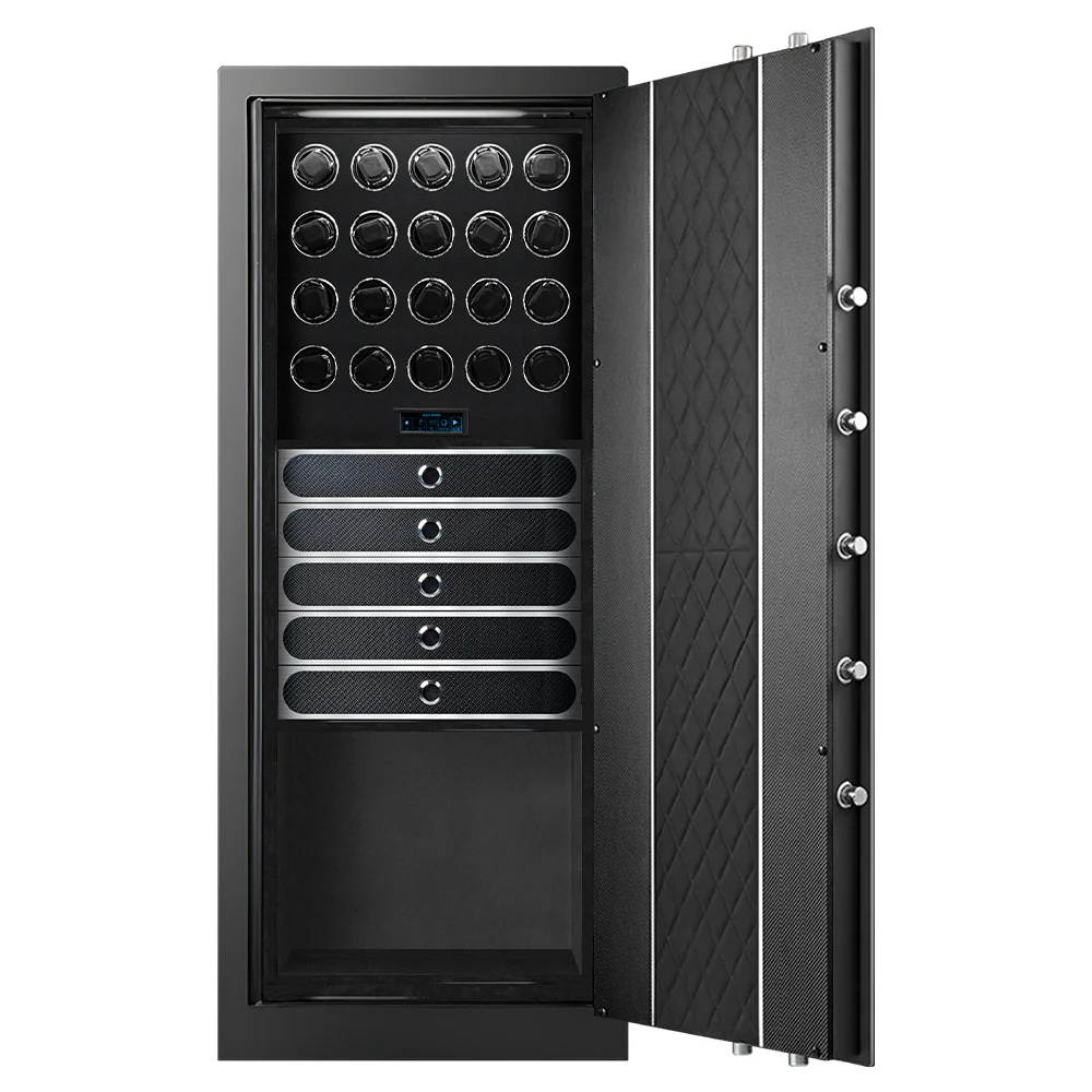 Der Chronoguard Titan 20 ist eine Ikone der Opulenz, der Spitzentechnologie und der unvergleichlichen Sicherheit. Dieser hochmoderne Tresor wurde für anspruchsvolle Sammler entwickelt und bietet den perfekten Rückzugsort für Ihre wertvollen Uhren, Schmuck und Wertsachen.