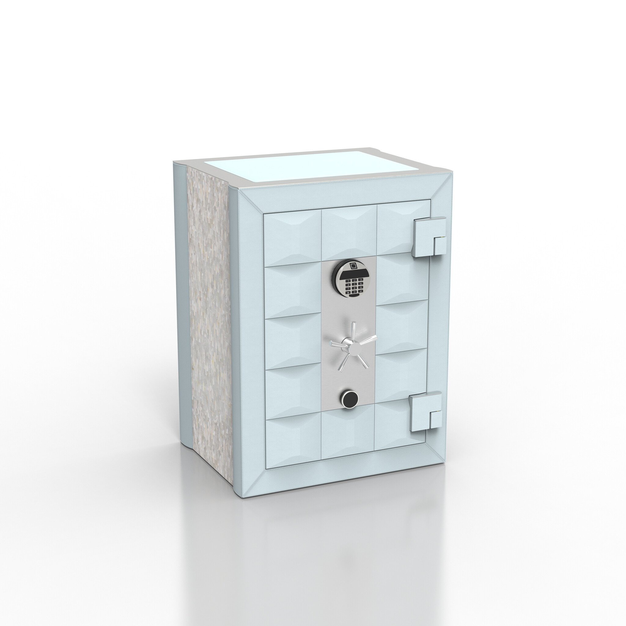 Die TITAN PERLUM-Serie ist inspiriert von der harmonischen Verbindung von schimmerndem Perlmutt und der scharfen Reflexion von Metall. Die Seiten sind aus sorgfältig ausgewähltem Perlmutt gefertigt, während die Vorderseite dreidimensionale, erhabene, rautenförmige Elemente aufweist, die robusten Schutz mit elegantem Design vereinen. Unter verschiedenen Lichtverhältnissen schimmert die Perlmuttoberfläche sanft und irisierend. Je nach Blickwinkel entsteht eine lebendige, vielschichtige Textur, die die Inspiration des schimmernden Perlmuttglanzes perfekt widerspiegelt. Diese Kollektion eignet sich besonders für Wohnzimmer, private Tresore und begehbare Kleiderschränke in luxuriösen Residenzen. Sie bietet eine sichere Aufbewahrungsmöglichkeit für Schmuck, Luxusuhren und wichtige Dokumente.