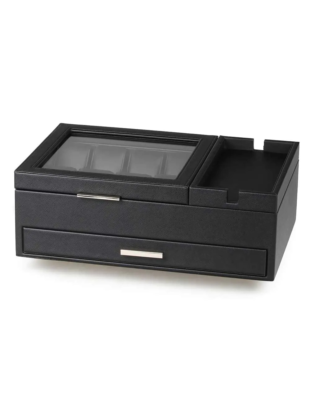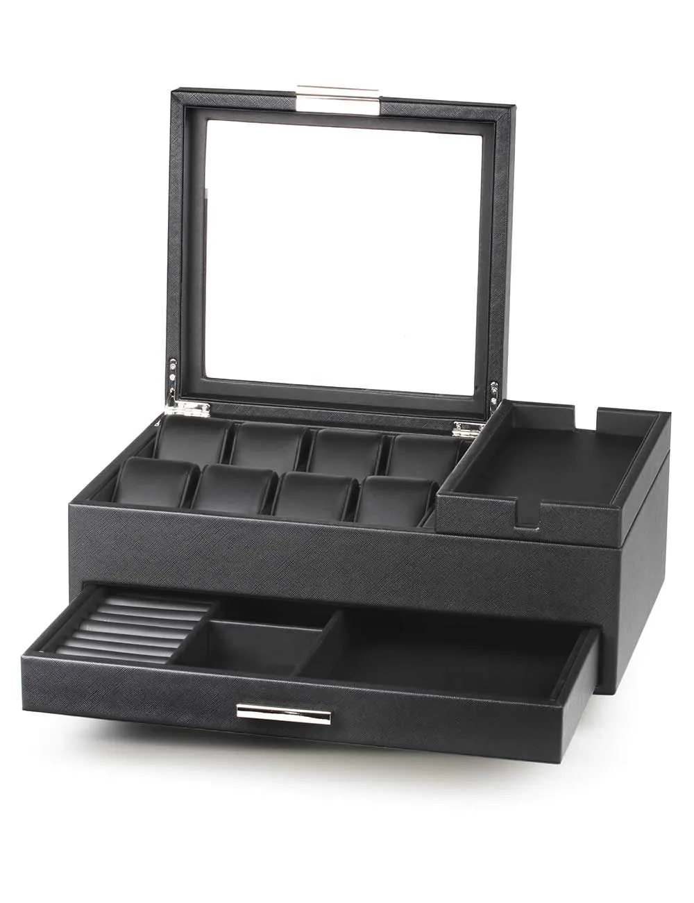 Eine tolle Geschenkidee in edler Umverpackung. Dieser Organizer lässt nicht nur das Herz von Uhrensammlern höher schlagen. Zusätzlich zu 8 Armbanduhren findet sich weiterer Stauraum für z.B. Ringe, Armbänder, sonstige Schmuckteile und Zubehör.