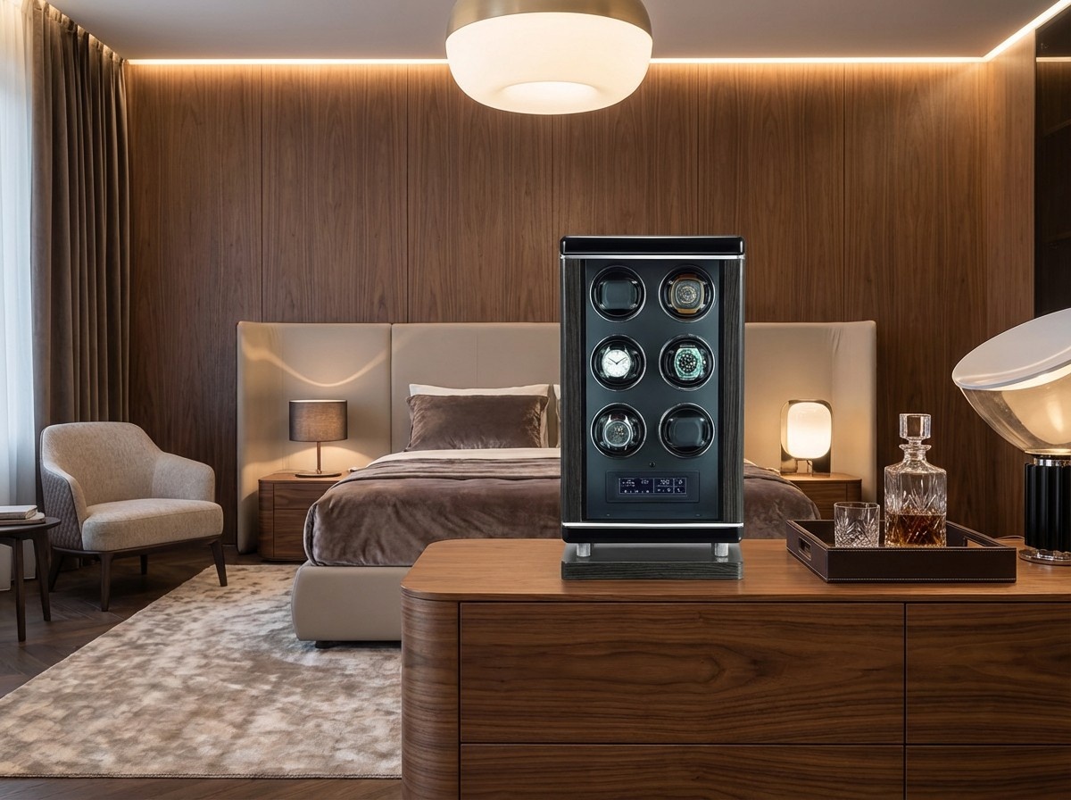 • Schützen, versorgen und präsentieren Sie Ihre Zeitmesser mit dem 6er Beweger von Chronoguard. Ausgestattet mit fingerabdrucksicherer Verriegelung und ultraleisen Motoren, ist dies unverzichtbare Ausrüstung für jeden Uhrenliebhaber. 3 Jahre Garantie.