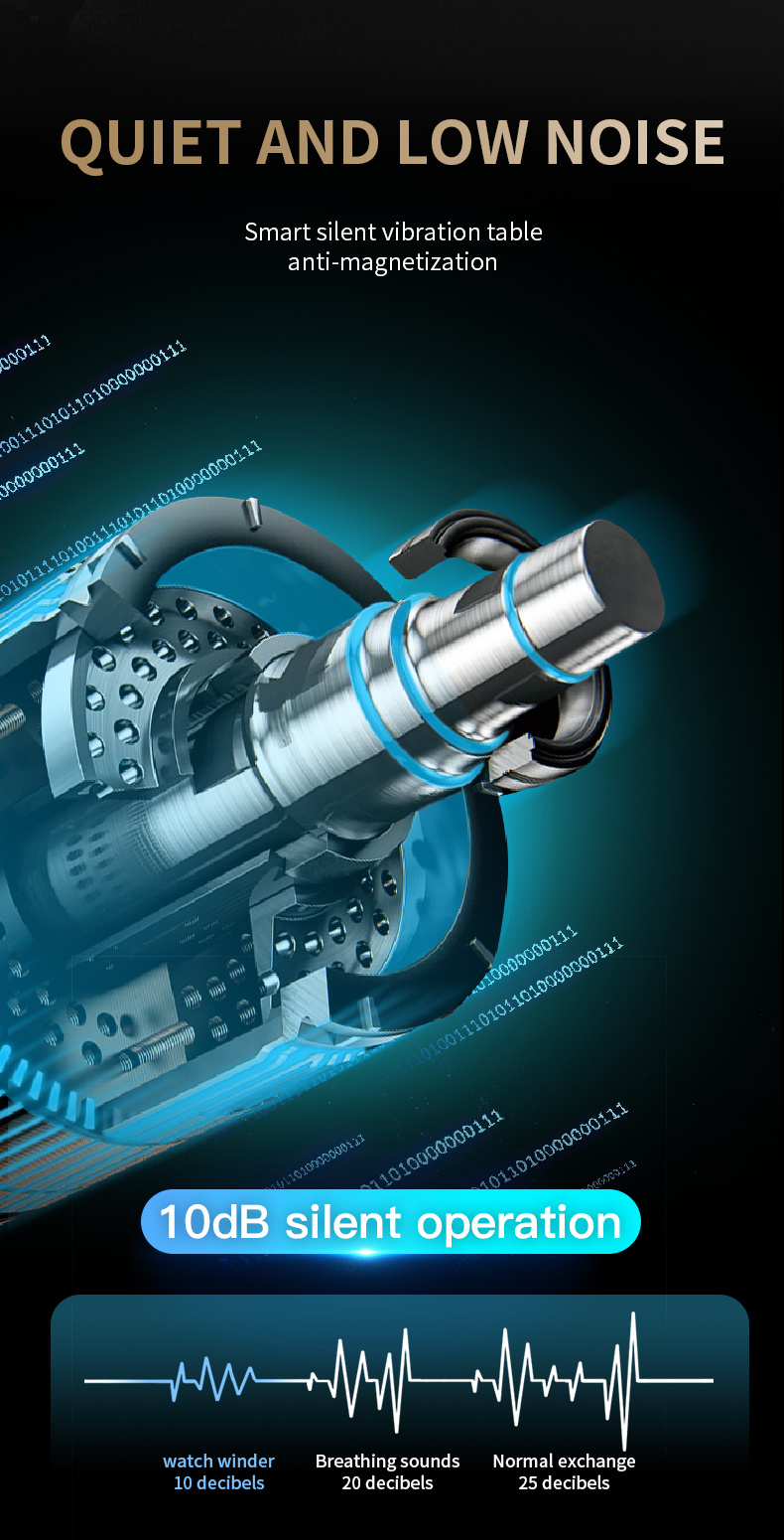 15 verfügbare Aufzugsprogramme sorgen für Kompatibilität mit jedem Uhrenmodell. Sie können die Anzahl der Umdrehungen pro Tag von 650 bis 1950 TPD in Kombination mit einer beliebigen Drehrichtung einstellen. Es stehen 3 Drehrichtungen zur Verfügung: im Uhrzeigersinn, gegen den Uhrzeigersinn und bidirektional (gemischt). Im gemischten Modus dreht sich der Rotor abwechselnd im Uhrzeigersinn und gegen den Uhrzeigersinn.