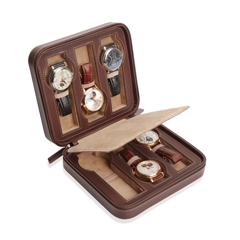 Mit der neuen Uhrenetui Invia für 6 Uhren Braun gehen Ihre Uhren kultiviert auf Reisen. Dank der exquisiten Verarbeitung mit gesteppter Ziernaht, dem weich gepolsterten Mikrofaserfutter und dem umlaufenden Reißverschluss sind Ihre Uhren optimal geschützt. Die Kollektion umfasst insgesamt fünf Größen (für eine, zwei, vier, sechs und acht Uhren), in vier erlesenen Farben.Besonderheiten:Genarbtes MicrolederAnsprechend gestepptes Design5 verschiedene GrößenvariantenErstklassige VerarbeitungHochwertige MaterialienGarantie:Gewährleistung: 2 JahreUhren sind im Lieferumfang nicht enthalten