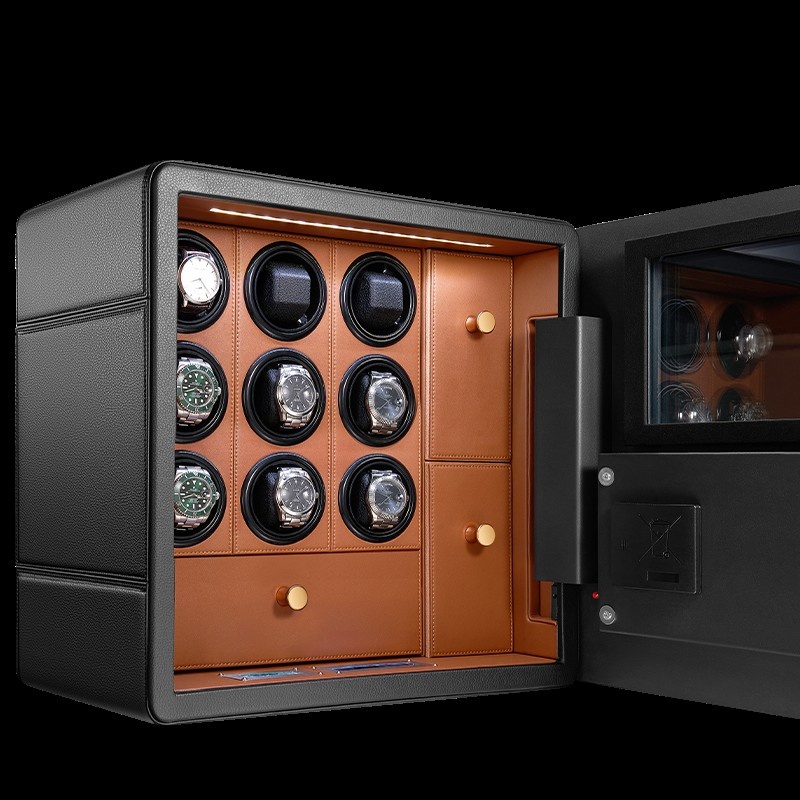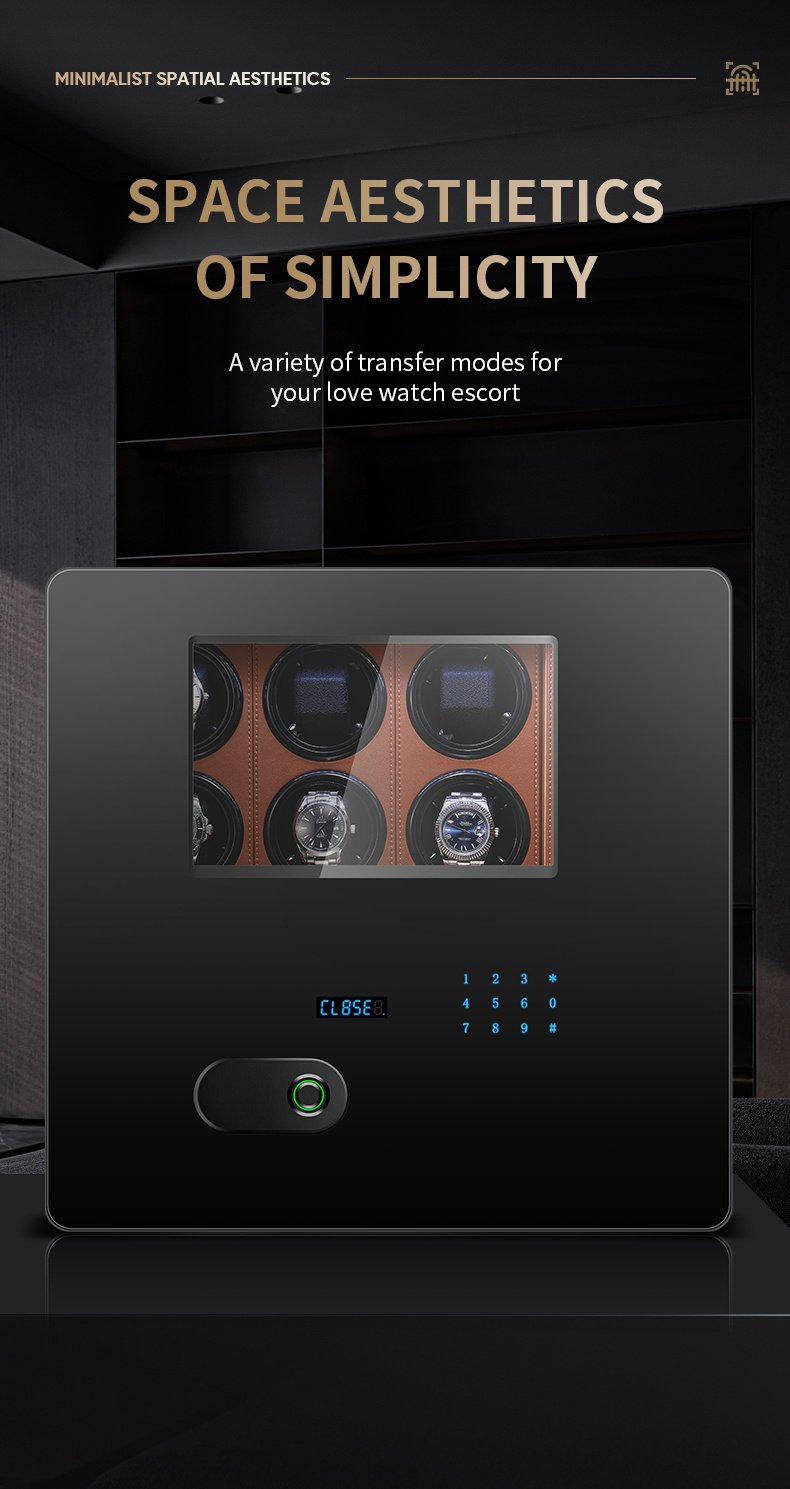 ChronoVault™ sichert Ihre wertvollsten Zeitmesser hinter dem Fingerabdruckzugriff und kombiniert modernste biometrische Sicherheit mit leisen, individuell programmierbaren Rotoren. Im Inneren ist jede Uhr in weichem Velours gehüllt, der vor Staub, Vibrationen und Verschleiß geschützt ist.