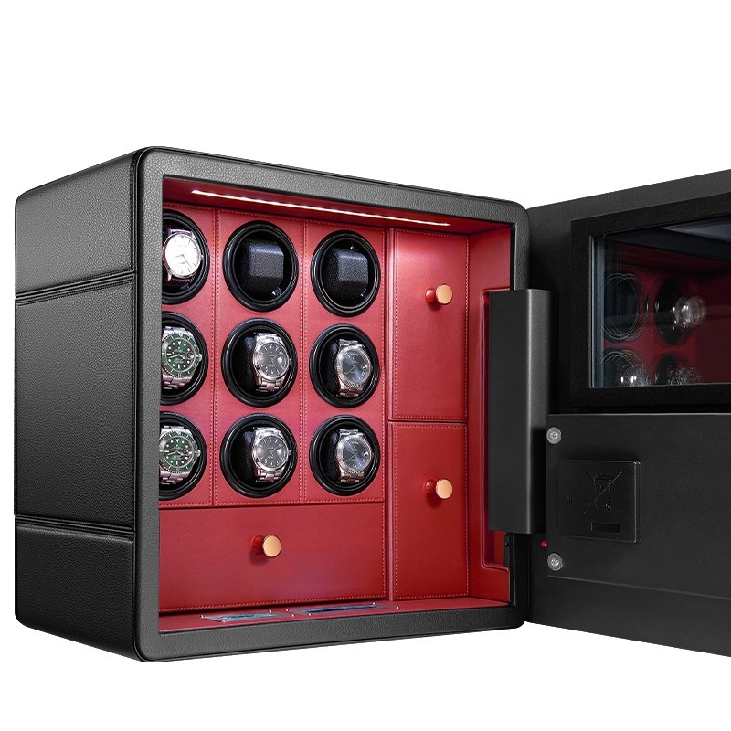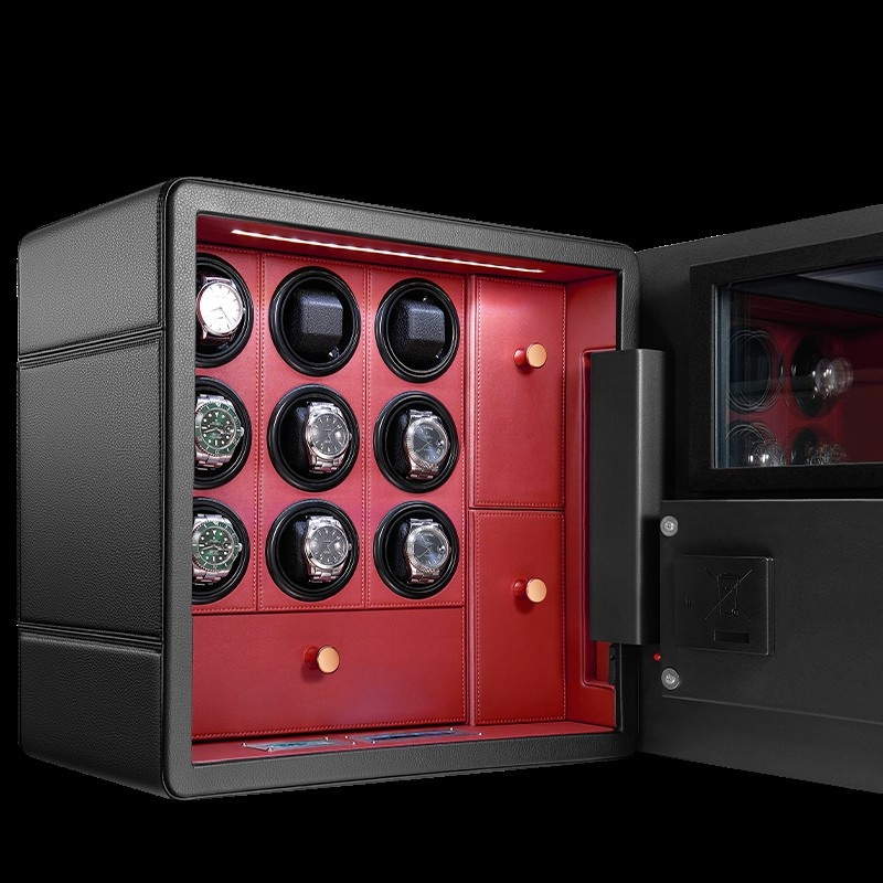 ChronoVault™ sichert Ihre wertvollsten Zeitmesser hinter dem Fingerabdruckzugriff und kombiniert modernste biometrische Sicherheit mit leisen, individuell programmierbaren Rotoren. Im Inneren ist jede Uhr in weichem Velours gehüllt, der vor Staub, Vibrationen und Verschleiß geschützt ist.