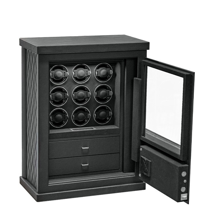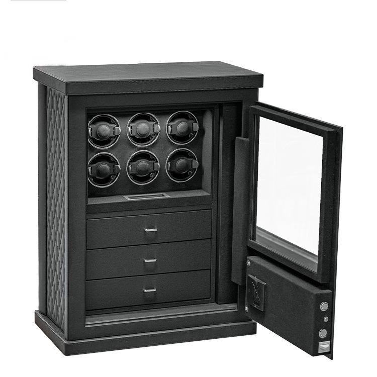 Außenverkleidung: Hochwertiges schwarzes Leder Innenausstattung: Luxuriöser Uhrenbeweger aus schwarzem Samt.