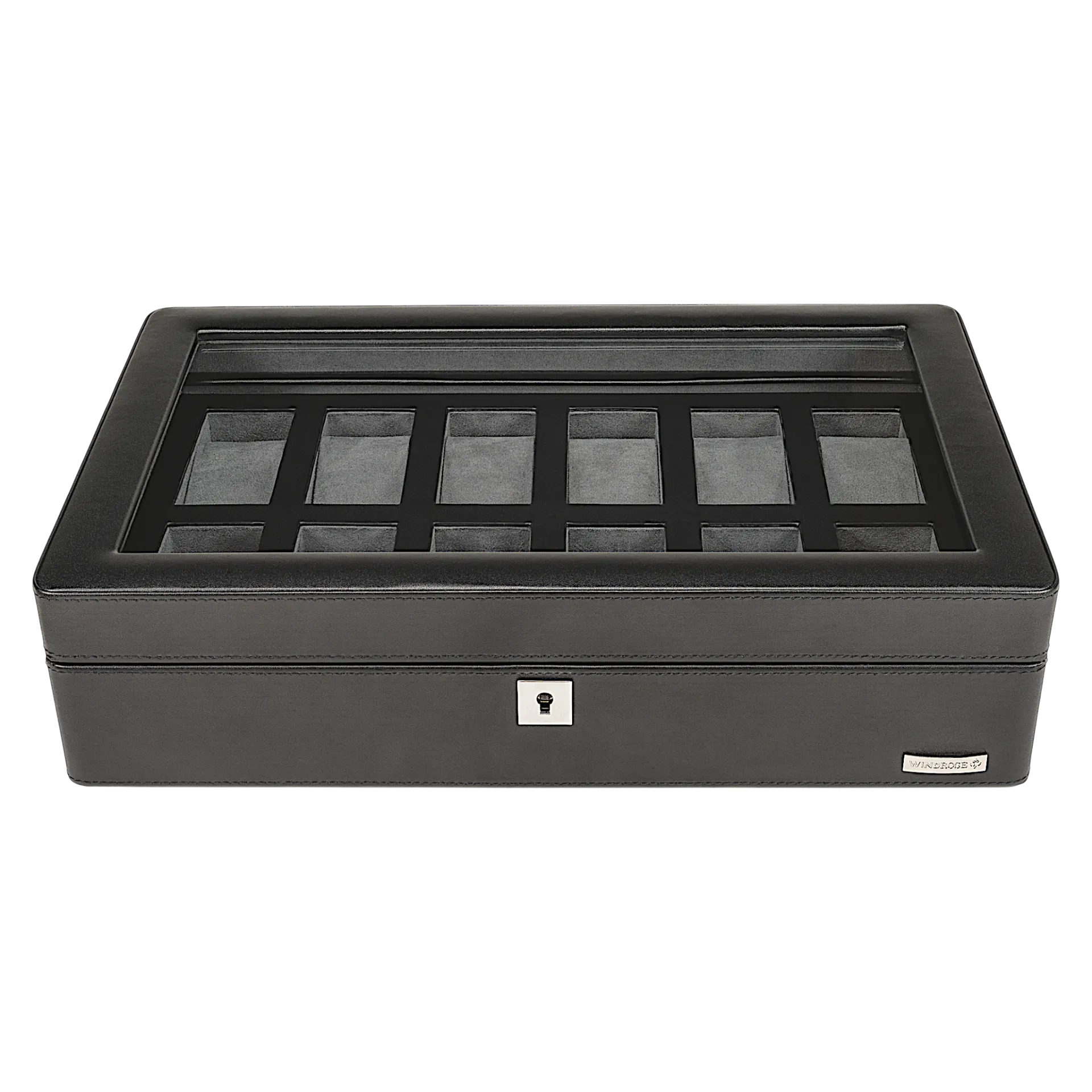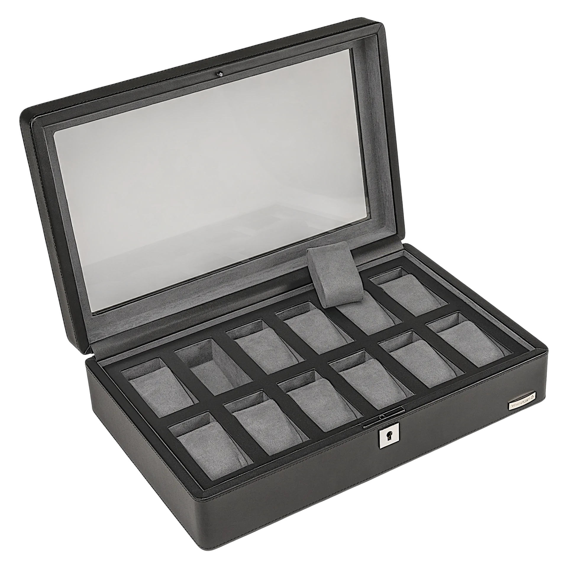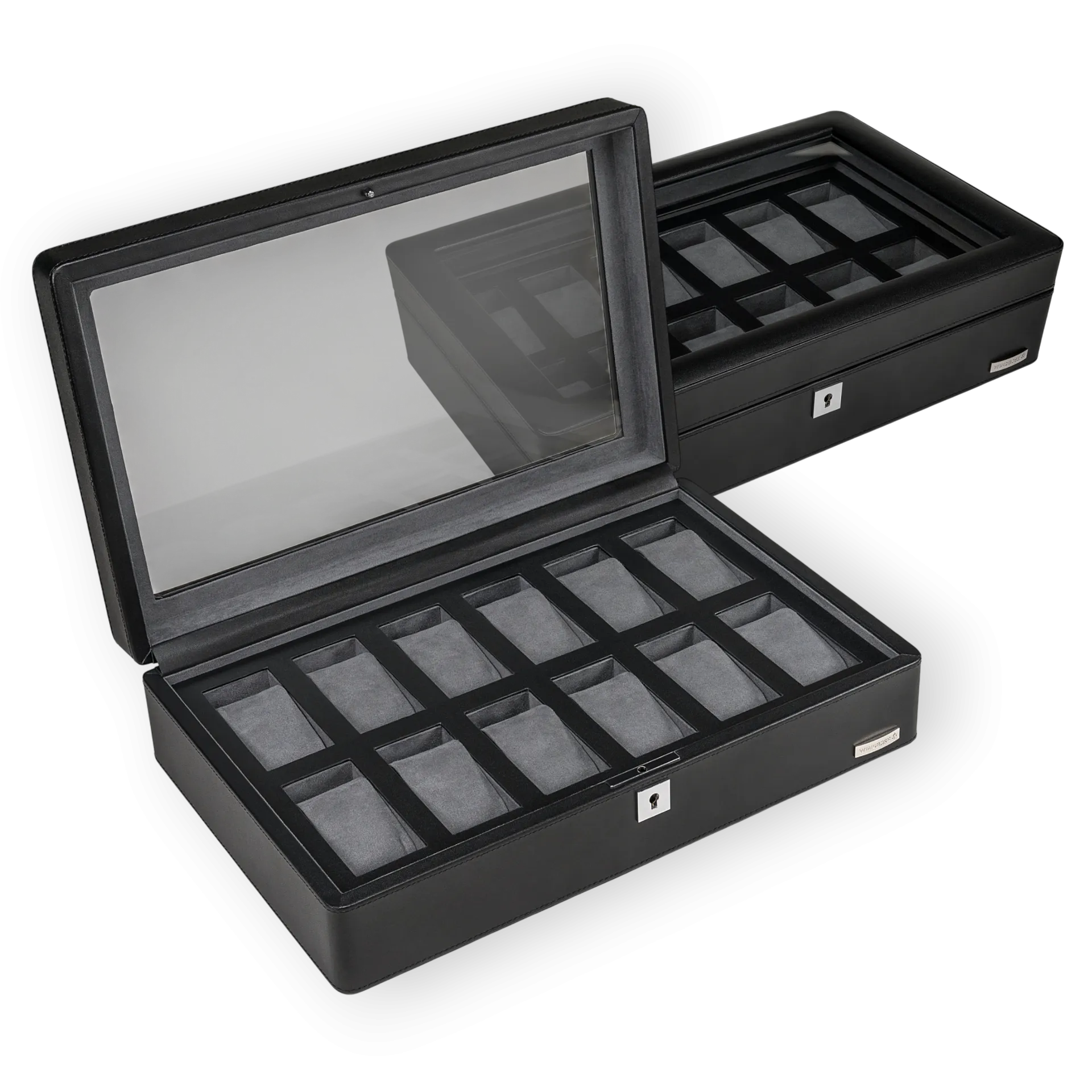 Uhrenbox zur übersichtlichen Aufbewahrung von Uhren. Feine Handarbeit, qualitativ hochwertig gefertigt und äußerst langlebig.- für 12 Uhren- Uhrenpads mit genug Abstand auch für breite Uhren- Deckel mit Sichtfenster- Uhrenpads einzeln entnehmbar- Pads gut gepolstert zur sicheren Aufbewahrung- Breite der Uhrenpads ist 40mm