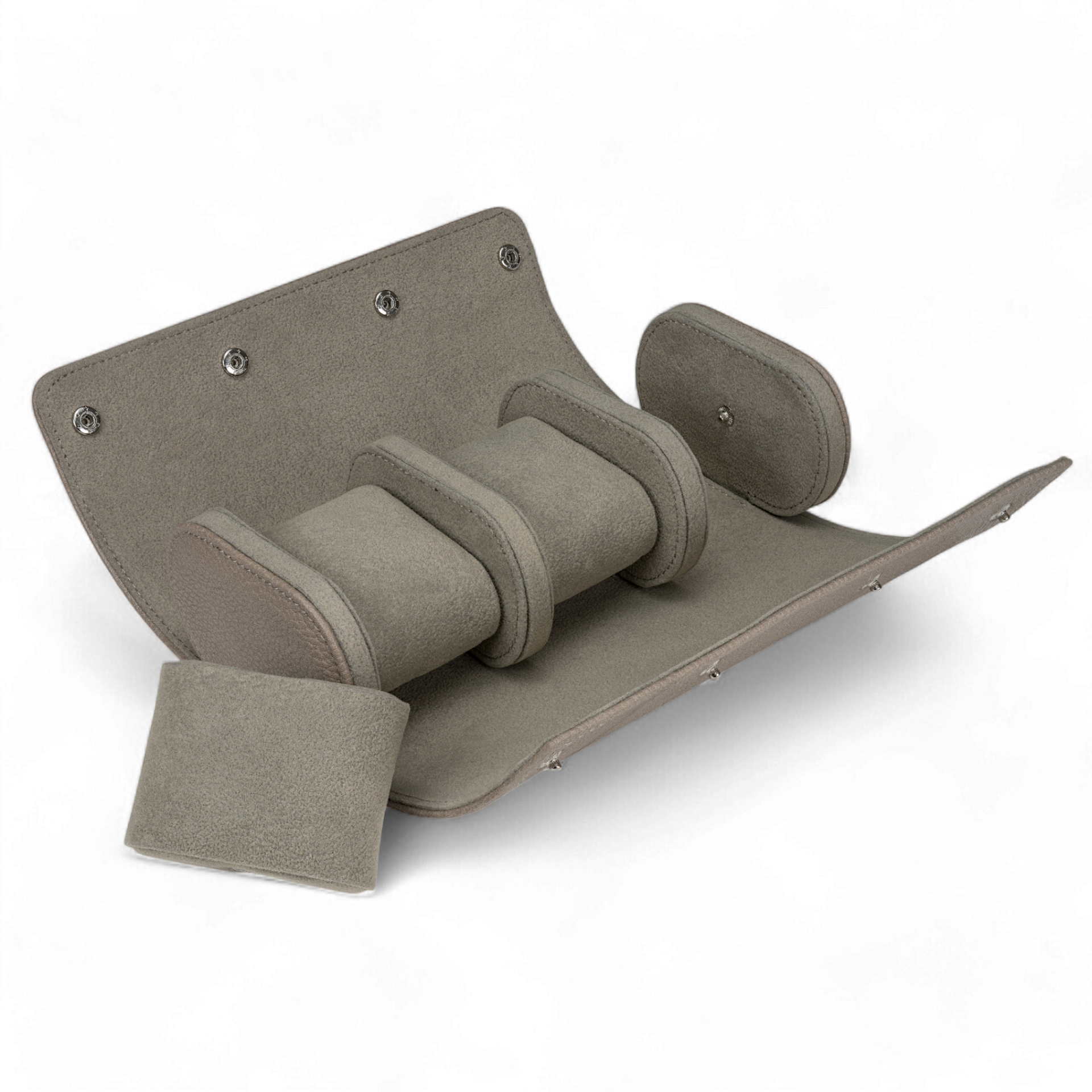 Uhrenbox zur übersichtlichen Aufbewahrung von Uhren. Feine Handarbeit, qualitativ hochwertig gefertigt und äußerst langlebig.- für 3 Uhren- Breite Uhrenpads für breite Uhren- Sicherer Verschluß mit Druckknopfen- Platzsparende Form und somit ideal für die Reise- Uhrenpads einzeln entnehmbar- Uhrenpads mit Druckknöpfen befestigt für sicheren Halt für unterwegs