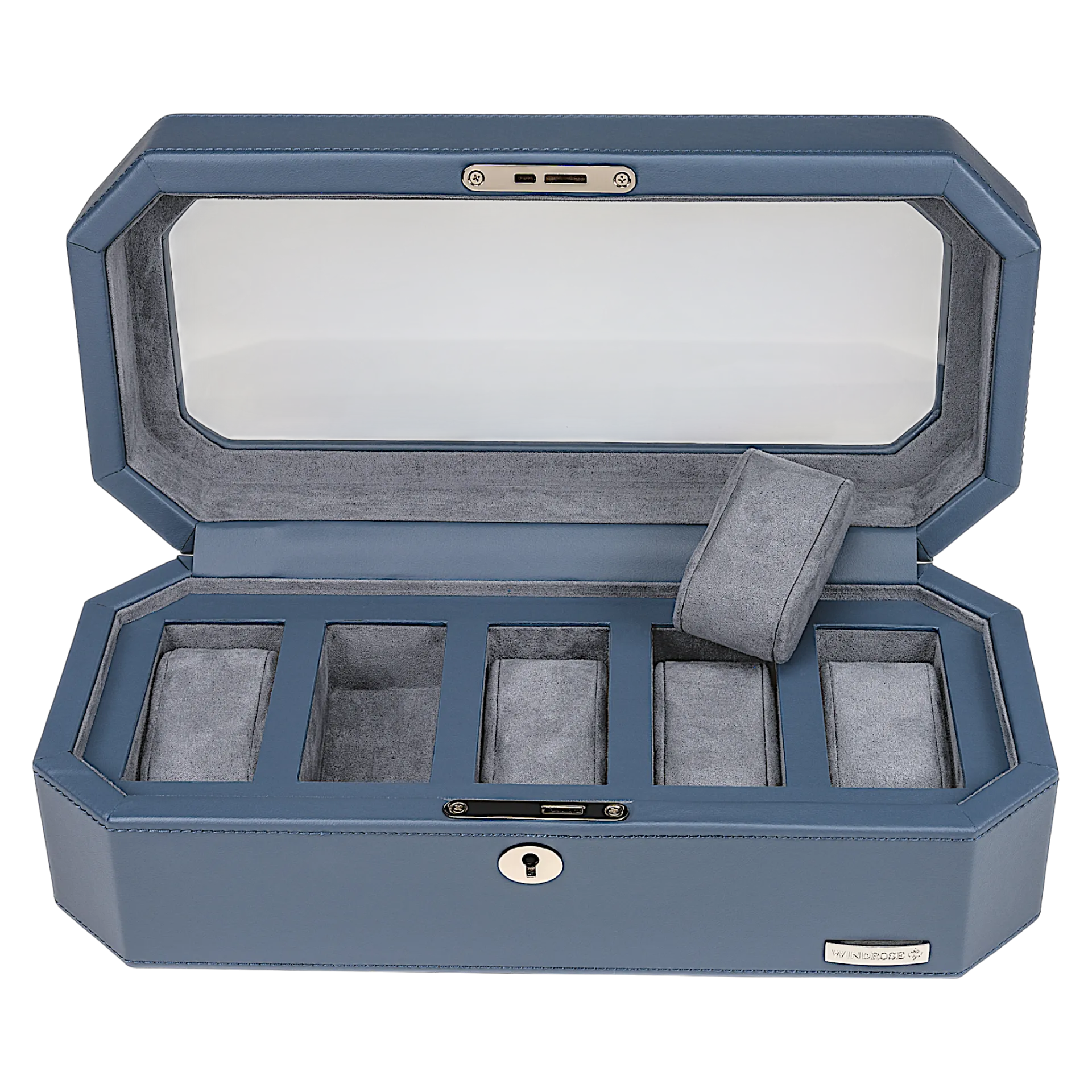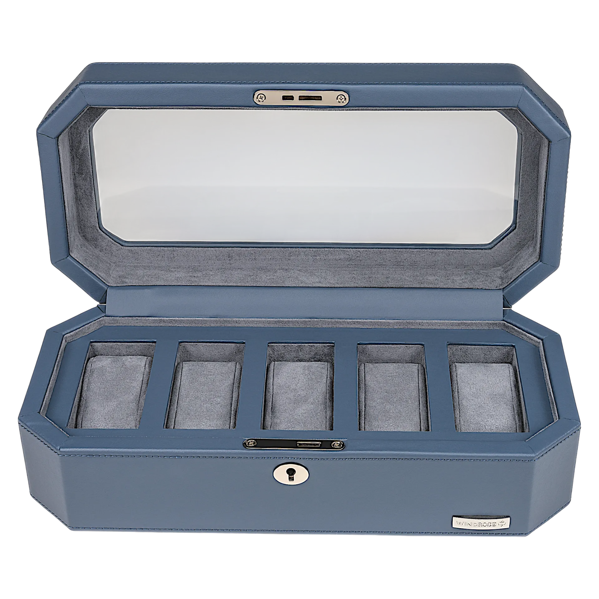 Uhrenbox zur übersichtlichen Aufbewahrung von Uhren. Feine Handarbeit, qualitativ hochwertig gefertigt und äußerst langlebig.- für 5 Uhren- Uhrenpads mit genug Abstand auch für breite Uhren- Deckel mit Sichtfenster- Uhrenpads einzeln entnehmbar- Pads gut gepolstert zur sicheren Aufbewahrung- Breite der Uhrenpads ist 40mm
